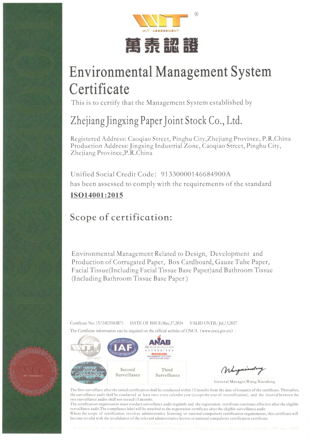 Jingxing Paper took the lead in the same industry to pass the ISO9001 quality management system and ISO14001 environmental management system certification, in 2014 passed the OHSAS18001 occupational health and safety management system certification, in 2015 passed GB / T23331 energy management system and FSC? forest system certification, passed in 2018 Certification of integration management of two industries.