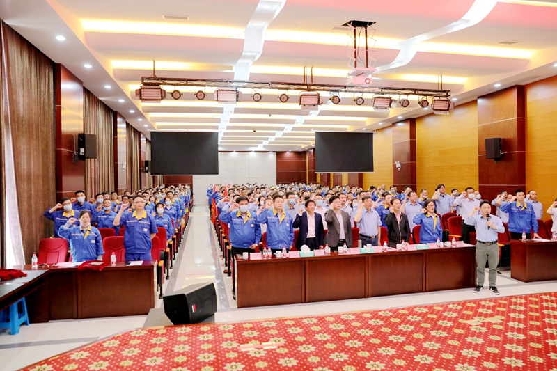 與會人員在公司副總經(jīng)理魯富貴的帶領(lǐng)下,高舉右拳向大會莊嚴(yán)宣誓,用擲地有聲的口號展示出了每一個景興人實施和執(zhí)行精益管理的信念與決心。宣誓姜本次大會的氣氛推向高潮,更加讓景興人在此刻再次凝聚士氣,奮發(fā)向上,讓團隊力量成為本次項目的向心力,彰顯出全體景興人對精益管理的昂揚斗志。