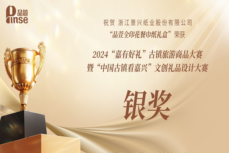 近日,景興紙業(yè)“品萱全印花餐巾紙禮盒” 在嘉興市文化廣電旅游局舉辦的2024“嘉有好禮”古鎮(zhèn)旅游商品大賽暨“中國古鎮(zhèn)看嘉興”文創(chuàng)禮品設(shè)計(jì)大賽上成功摘得銀獎!