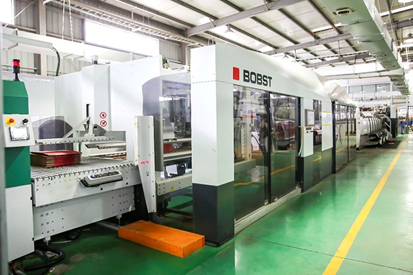 ![]() | 公司擁有從德國(guó)引進(jìn)的先進(jìn)瓦楞紙板生產(chǎn)流水線和從法國(guó)引進(jìn)的五色柔印制箱聯(lián)動(dòng)線,使生產(chǎn)自動(dòng)化控制得到全面、有效的提高。德國(guó)BHS卓越之星五層瓦楞紙板生產(chǎn)線,設(shè)計(jì)最高時(shí)速300米/分,年產(chǎn)能可達(dá)1億平方米。該流水線采用了國(guó)際最先進(jìn)的生產(chǎn)工藝,智能化程度極高,配備QDM,能夠記憶和調(diào)取訂單生產(chǎn)資料,確保穩(wěn)定運(yùn)行;同時(shí)瓦楞輥采用卡夾安裝以及周邊加熱方式,調(diào)換瓦楞輥?zhàn)羁?5分鐘,大大提高換瓦楞效率。法國(guó)BOBST(博斯特)FFG 8.20全自動(dòng)紙箱聯(lián)動(dòng)線,生產(chǎn)速度可達(dá)24000個(gè)紙箱/小時(shí),只需3人就能輕松操作機(jī)器,是國(guó)內(nèi)首條該型號(hào)紙箱聯(lián)動(dòng)生產(chǎn)線。整條線具有快速設(shè)置功能,只需1~2分鐘即可完成換單,能超高效生產(chǎn)規(guī)則開槽箱,具有SOC功能(前單完成后單自動(dòng)到位)、五色印刷、自動(dòng)印刷糾錯(cuò)等功能。 |